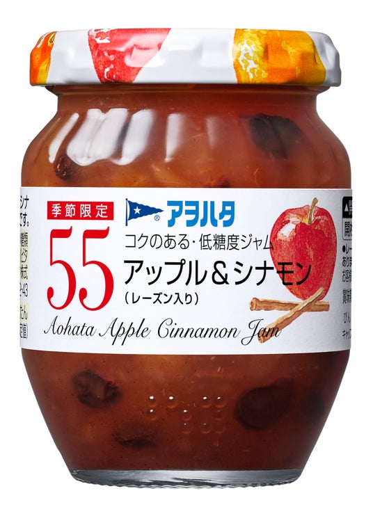 アヲハタ株式会社(本社:広島県竹原市、代表取締役社長:山本範雄、以下アヲハタ)は、フルーツ本来の色と香りにこだわったコクのある低糖度ジャム「アヲハタ 55」から、「ストロベリー&ラズベリー」「アップル&シナモン」を秋冬の季節限定品として再発売します。
