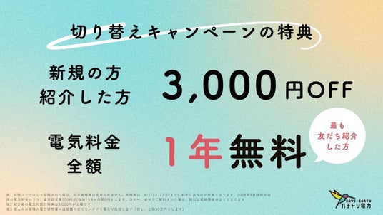 3.招待コードを利用して、ハチドリ電力へ切り替えが行われた場合、電気代割引特典3,000円*2が新規契約者と紹介者の両方に適用