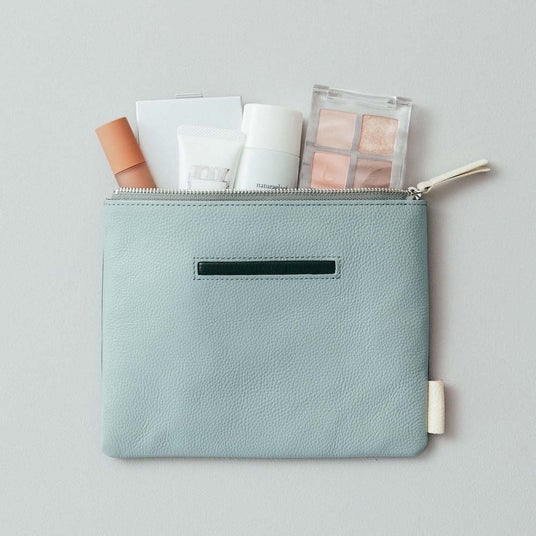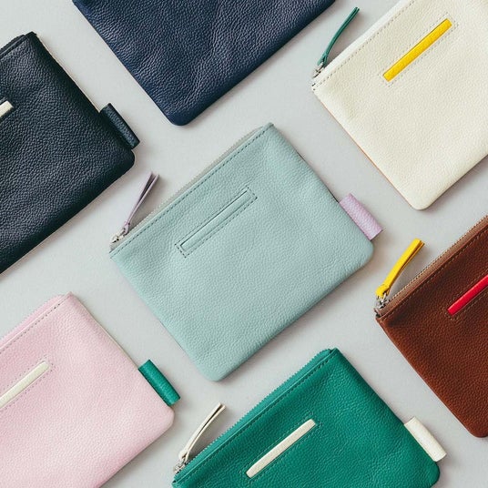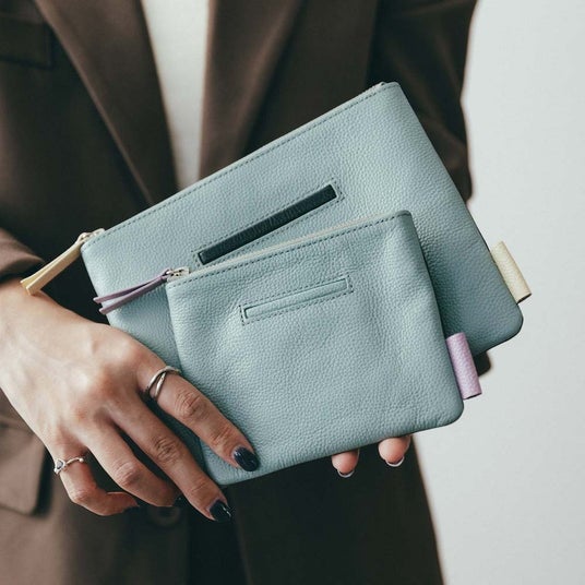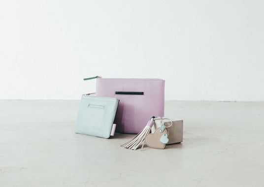 メイク道具やガジェットなど、バッグの中の細かいものを整理でき、かさばらないフラット形状の2サイズのポーチです。外側の全面がレザーになっており、表面と裏面でそれぞれカラーカスタマイズができます。また、ポーチのアクセントになっている引き手とタグは同色にすることで統一感を出るようにしました。