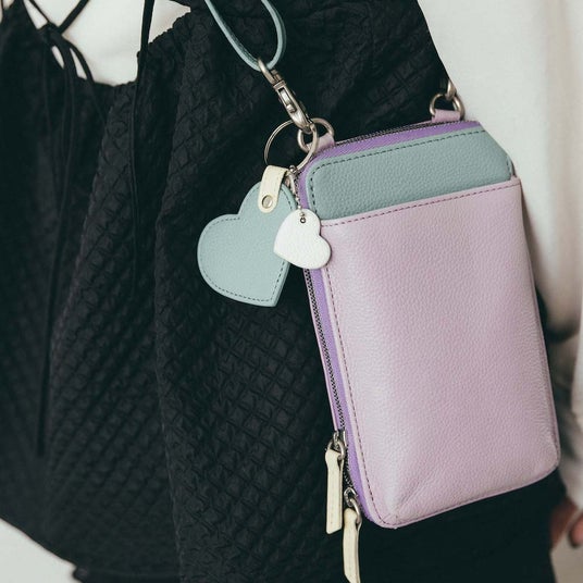 サイズ違いの2つのハート型チャームはバッグや鍵に付けても最適なサイズ感にこだわり、第一印象のかわいさを追求しデザインしました。カラーカスタマイズは大きなハートの表裏と小さなハート、そしてループの4か所で可能です。