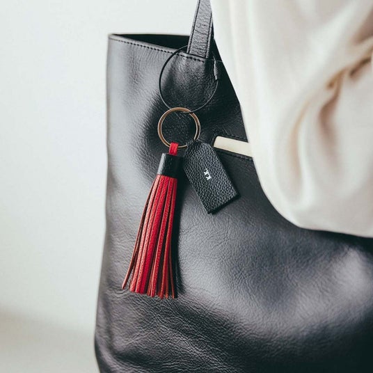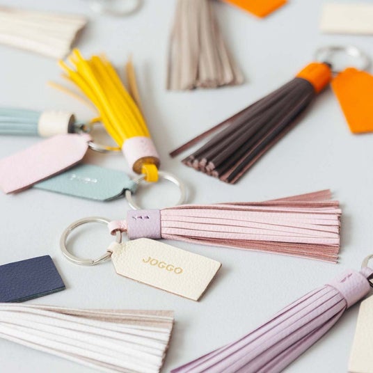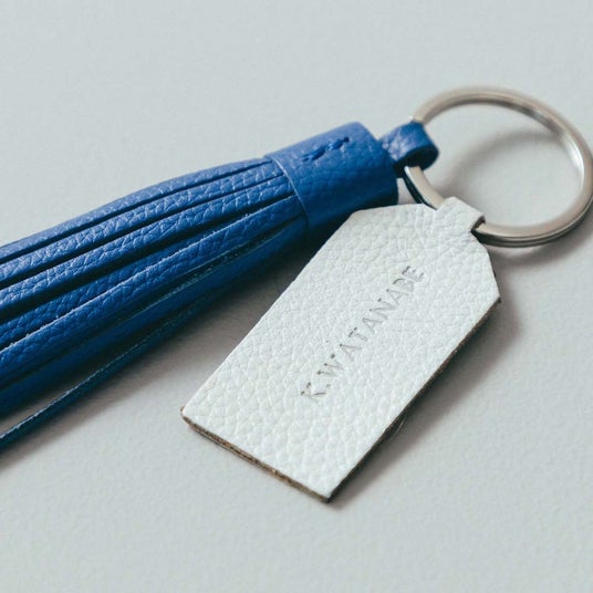 バッグにつけた時にほどよい存在感になるようなサイズにこだわりました。また、フリンジ幅はタッセル部分が野暮ったくならないように試作を重ね幅を決めました。さらに、タッセルの根元は革巻き仕上げをしており、フリンジとタグとを合わせて3色から自由に組み合わせていただくことができます。