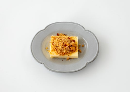 ローストして細かく刻んだヘーゼルナッツ、カシューナッツ、アーモンドに、バターと砂糖を長時間煮詰めて作るカリカリした飴状の「バタースカッチ」、濃厚な味わいの北海道産てんさい糖、イラン北部のアルボルズ山脈で採取されるブルーサファイア色のクリスタルブルーソルト、アッサル湖で採取されるパール塩、ヒマラヤ岩塩などを調合し、焦がしバターやブリュレなどの風味を感じさせる「ふりかけ」に仕立てました。