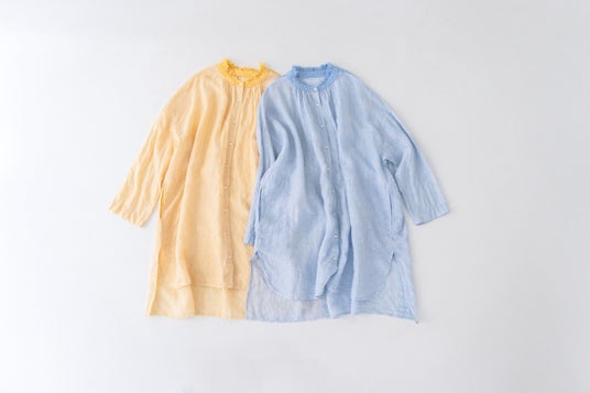 使用した夏らしく爽やかな新作ワンピースとブラウス。