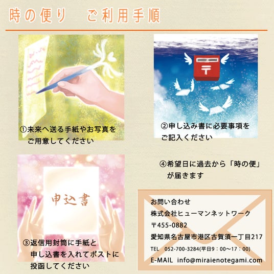 時の便り(ときのたより)未来の希望日に手紙や写真を贈ることができます。