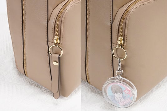 フロントポケットの引き手は取り外し可能です。お好みのキーホルダーやチャームに付け替えることができます。