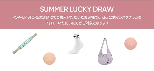 POP-UP STOREの店頭にてご購入いただいたお客様でandar公式インスタグラムをフォローいただいた方がご対象のandar人気商品が当たるかもしれないハズレなしのラッキードローイベント。
