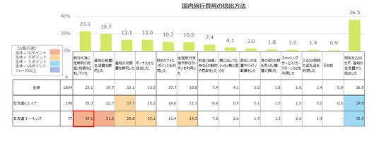 「旅行の為に、定期的に貯金/投資などをしていた」は「女友達と2人」では25.3%であったのに対し「女友達3~4人」では35.1%となり、グループ旅行をする人は従前より定期で旅行資金を捻出しているケースが多い傾向です。