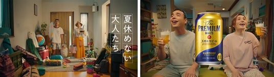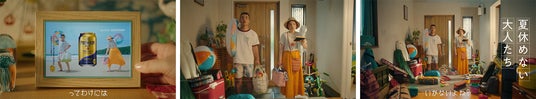 夏休みに入ると、海水浴にキャンプ、旅行など楽しいイベントが目白押しで遊んでばかりの楽しい毎日が過ごせる…という訳にはいかず、帰宅後の片付けや日々の家事、そして子どもたちのお世話と、いつもよりも大変なママ・パパたちの姿を描きます。「夏休みは実は疲れやすい、ストレスが溜まりやすい」といった意見もネット上で話題になるなど、楽しいだけではない、悩みや苦労が増える大人の夏休み。そんな大変ながらも楽しい夏休みのイベントを終えた後には、「いい日、プレモル。」というコピーとともに、「ザ・プレミアム・ モルツ」を飲みながらお互いを労い、楽しい思い出を振り返りながら、幸せを噛み締めるママ・パパの姿を描いたCMとなっています。