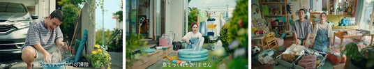 夏休みを遊び尽くした家族のシーンでCMは終わりと思いきや、そこには散らかった部屋に帰宅し、呆然と立ち尽くす夫婦の姿が。遊んでばかりいられないのが、大人たちの夏休み…と現実を突きつけられます。