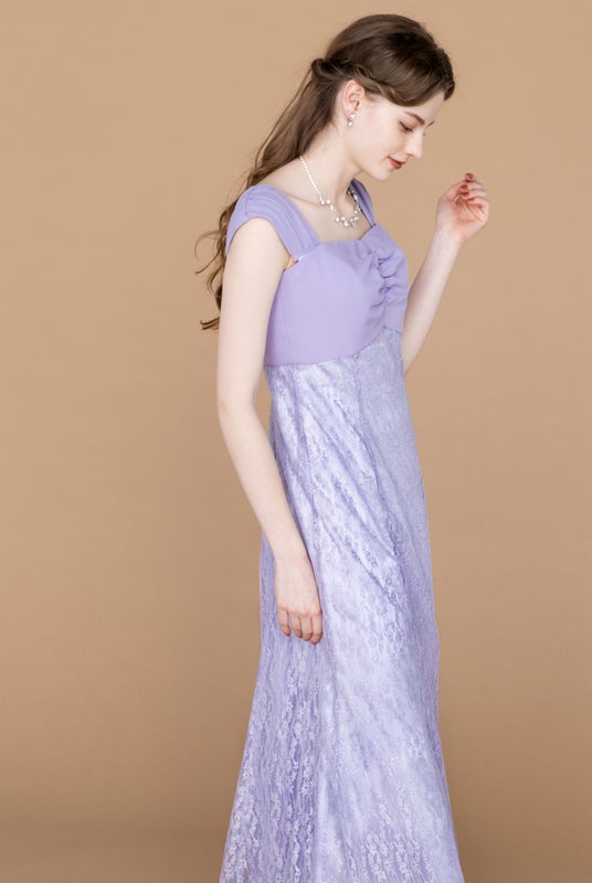 軽やかな生地感とラメで輝くレースが目を惹くドレス。