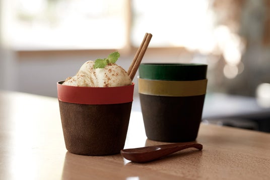 KOMLAの原材料は、紙と漆(うるし)。継ぎ目のない紙コップに、ウルシの木の樹液そのままの「生漆(きうるし)」と、口部のリム部分に「色漆(いろうるし)」を塗布しています。化学物質を使用しておらず、開発・製造においても環境負荷が少ないのが特徴の一つです。