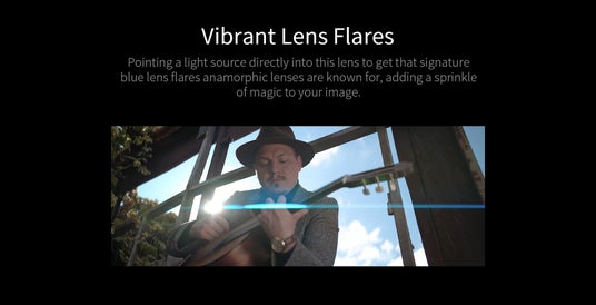 光源を直接このレンズに向けることで、アナモルフィックレンズ特有の鮮やかな青いレンズフレアを得ることができます。これにより、映像に魔法のようなスパイスを加えることができます。