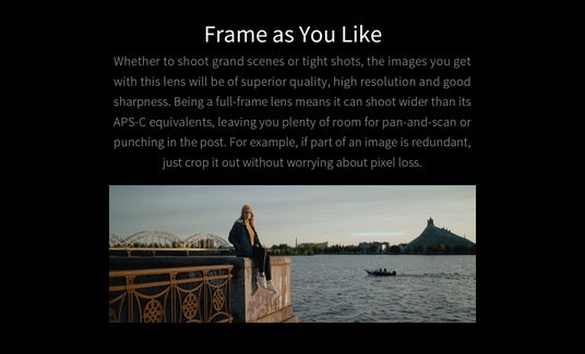 壮大なシーンから細部まで、このレンズが提供する画像は卓越した画質、高解像度、そして優れたシャープネスを誇ります。フルフレームフォーマットに対応することで、APS-Cレンズと比較して広い撮影範囲を実現し、パン・アンド・スキャンやポストプロダクションでのクロッピングに十分な余裕を提供します。例えば、画像の一部が冗長である場合、ピクセルの劣化を気にすることなくクロップすることができ、柔軟な編集が可能です。