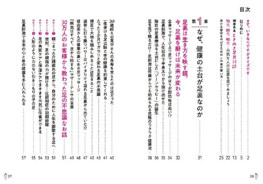 選挙に勝てる政治家の足、貧しい人たちを助けるために歩き続けたマザー・テレサの足の話から、認知症の初期段階が表れたことが足を見てわかった話など……足にまつわるエピソードが盛りだくさん。30万人以上の足を見てきた著者だからこそ語れる内容は、足裏の重要性を実感するに余りあるものです。