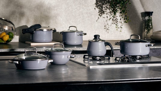 天然鉱石からインスピレーションを得た、高級感のあるカラーバリエーション。様々なキッチンやテーブルにも調和するシンプルなデザインで、末永くご愛用いただけます。