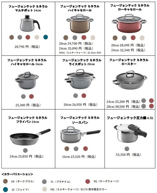 製品ラインアップ(https://www.wmf.co.jp/fusiontecmineral/index.html)