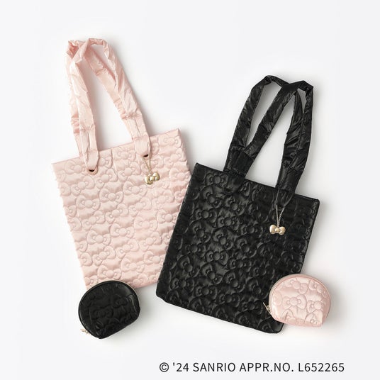 【ハローキティのアイコンでもあるリボンモチーフをキルティングで表現したトートバッグとポーチ】