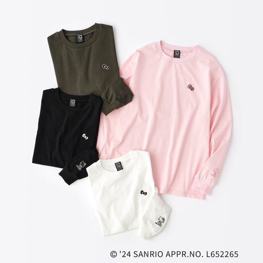 【ハローキティのアイコンでもあるリボンモチーフを胸元に刺繍した長袖Tシャツ】