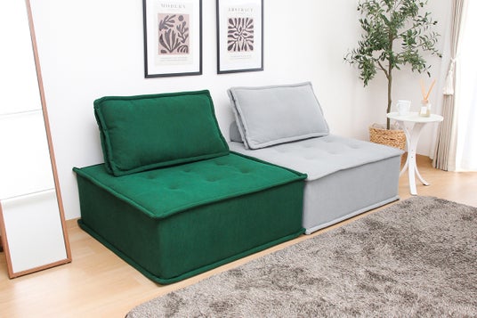 単体でもあぐらをかいてゆったりくつろぐことができますが、2つ合わせると幅180cmの3人掛けソファに。またソファベッドにするなど自分に合うスタイルをつくることができます。