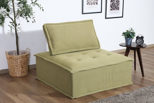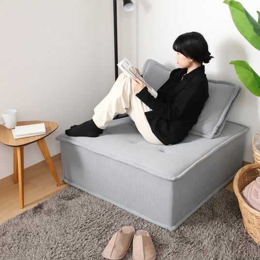 あぐらもかけるような幅94cm×奥行94cmの幅広タイプのスクエアソファ。背もたれのクッションが動かせるので、前後ろなどの向きがなくスタイリングもしやすい仕様です。また生地にはコーデュロイ地を使用しており肌触りも良く、また見た目にもおしゃれです。