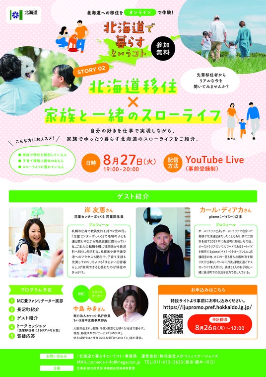 今回は、長沼町で子育てに励む二組の移住者をお呼びし、自分の好きを仕事で実現しながら、家族でゆったりと暮らす北海道のスローライフについてお話しいただきます。