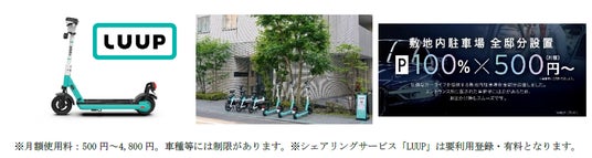 また、マンションの一部に電動マイクロモビリティのシェアリングサービスLUUPポートをご用意しました。仙台都心を移動する際の気軽な手段として、木町通のカフェやショップ巡りが楽しめる共用設備です。