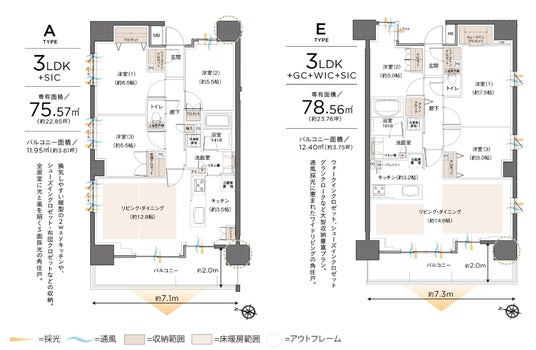 住居専有面積 : 68.68平方メートル ~78.56平方メートル