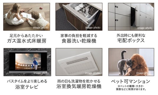 ガス温水式床暖房をはじめ、食器洗い乾燥機や浴室テレビを設置するなど、快適な暮らしを支える先進の設備仕様をご用意しました。