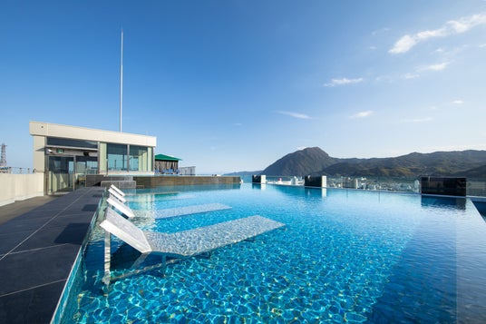 移り変わる別府の景色に囲まれた屋上のプールは、水面が水平線と重なり、まるで海と一体となったかのような非日常空間を味わうことのできる、アマネク別府の人気スポットです。