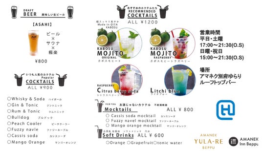 株式会社アマネク(東京都千代田区、代表取締役:安達禎文)が運営するホテル「アマネク別府 ゆらり」(以下:アマネク別府)は、2024年7月から9月29日(日)の間、屋上のインフィニティプールに期間限定でルーフトップバーをオープンいたします。別府湾と雄大に広がる空を眺めながら、冷たく爽快感のあるオリジナルカクテルやソフトドリンクなどをお楽しみいただけます。