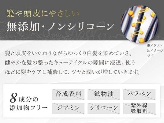 さらに容器はより使いやすく、スマートで洗練されたヒンジタイプの容器にフルリニューアルしました。髪と頭皮を最大限いたわりながら毎日シャンプーするたびにゆっくり綺麗に白髪を染めていきます。