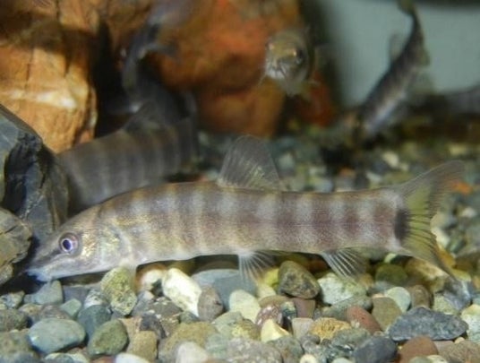 アユモドキは、コイ目アユモドキ科の日本固有の淡水魚で、国の天然記念物に指定されています。その名の通り、姿や泳ぎ方がアユに似ていますが、実はドジョウの仲間です。かつては琵琶湖淀川水系に広く分布していましたが、現在では岡山県と亀岡市の一部でしか確認されていません。環境省のレッドリストでは、近い将来における野生での絶滅の危険性が極めて高い「絶滅危惧IA類」に分類されています。