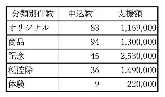 リターン商品として申し込まれた地域の「商品」や「体験」型のサービスは、結果として合計103件で1,520千円、支援額の23%を占める結果となりました。特に商品は申込数が最多の94件となり、選択肢を広げる役割を果たし支援総額の底上げに大きく繋がりました。支援額が最大となったのは「記念」型の商品で、バリアフリーデッキとともに設置予定の銘板にお名前を掲示する商品で、合計金額は2,530千円でした。