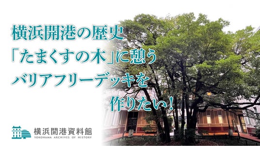 本年は安政元年(1854)にペリーが横浜に上陸し、日米和親条約が締結されてから170年の記念の年であり、ペリー上陸を見守り、慶応2年(1866)の火災と関東大震災という二度の大きな災害から復活した当館中庭にある「たまくすの木(横浜市地域史跡)」周辺について、バリアフリーデッキを整備するためにクラウドファンディングを実施しました。