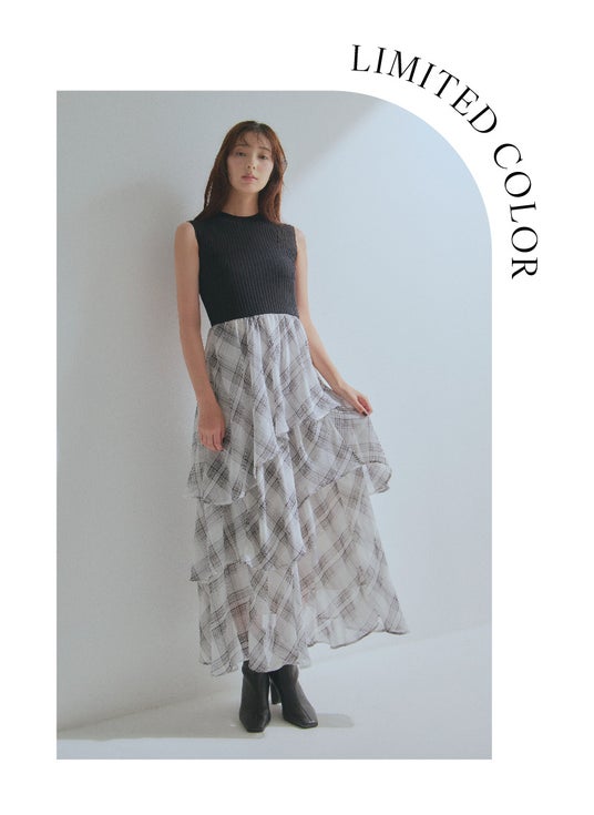 II.アシメティアードSKコンビニットOP ¥26,400tax in (BLK×CHECK)※岡山一番街店限定カラー
