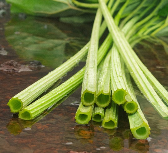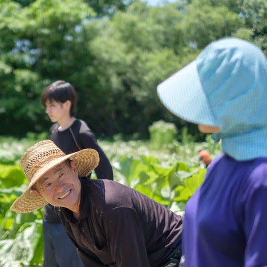 ラワンぶきをはじめ、小麦や玉ねぎ、長いもなどの農作物を生産する鳥羽農場。鳥羽秀男さんと昇子さんご夫妻、そして2022年に五代目として代表を引き継いだ長男・翔太さんの3人で農業を営まれています。2002年より、昇子さんは地元の小学生に向けた食育活動を開始。ラワンぶきが最も大きく育つ6月に、小学生を畑へ招待して実物を見学してもらい、朝採れのラワンぶきを実食します。食育体験を通して農業とラワンぶきの素晴らしさを次世代に伝えるのが、昇子さんの目標。また、水煮や塩漬けを食卓に並べる家庭が多い中、生のラワンぶきの美味しさを広めるための活動もされています。