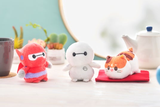 「うるぽちゃちゃん」から、ベイマックス、ベイマックス2.0、猫のモチのぬいぐるみが登場します。ベイマックスのぽってりとした白いボディを、「うるぽちゃちゃん」のぽっちゃりとしたフォルムで一層愛らしく表現しました。赤いパワードスーツや背中の翼、コロンとした愛くるしいモチのシルエットなど、細部までこだわったデザインにも注目です。