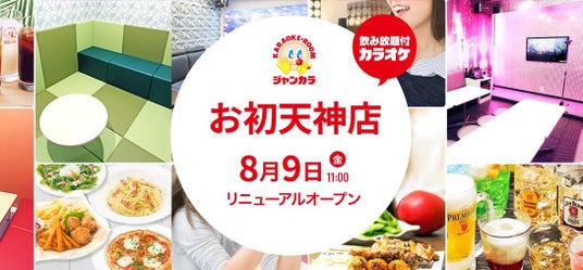 全国で180店舗を展開し、西日本においてカラオケチェーン業界最大規模を誇るジャンカラは、8月9日(金)に大阪市のお初天神店をリニューアルオープンいたします。