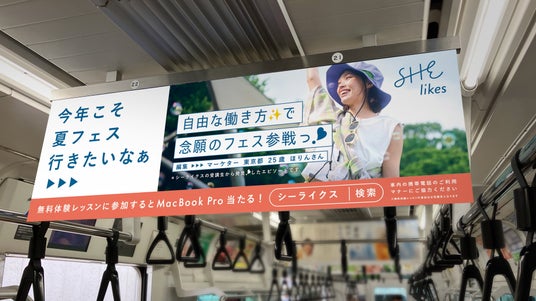 学ぶから働くまでを支援する女性向けキャリアスクール「SHElikes(シーライクス)」を運営するSHE株式会社(所在地:東京都港区、代表取締役CEO/CCO:福田恵里、以下SHE)は、私らしい働き方を叶えて、夏を満喫する女性を応援するキャンペーン「はたらくが自由になれば、夏はもっと楽しくなる!」の一環として、SHElikes受講生から「夏を楽しむ自由な働き方の声」を集めた駅広告ならびにJR車内中吊り広告を表参道駅構内とJR中央線・総武線の各駅停車の車内に掲出いたします。