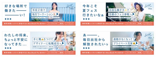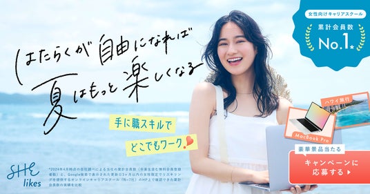 SHElikesの2024年夏のキャンペーンは、「はたらくが自由になれば、夏はもっと楽しくなる」を合言葉に、夏の間に「SHElikes」でどこでも好きな時間に働けるスキルを身につけていただく様々な取り組みを展開することで、自分らしいキャリアの実現を応援いたします。