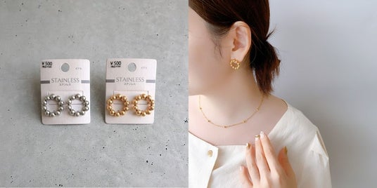 シンプルだけど、アクセントになるピアスも。