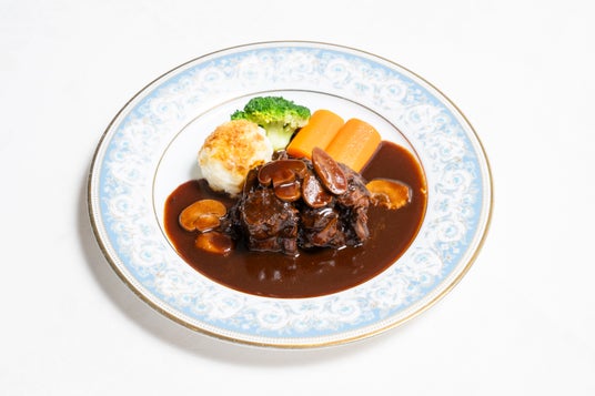 (3)タマネギや複数の香味野菜、肉の旨みが溶け込んだデミグラスソースの風味は絶品。さらに味噌を加えることで、お店で愛されるビーフシチューと同様、パンだけでなくごはんとも相性がよい味付けに仕上げました。