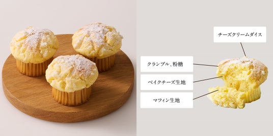ふわりとバニラの風味が広がり、チーズケーキとマフィンのおいしさがつまった一品です。