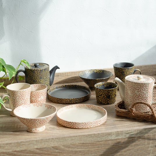 美濃焼は岐阜県の東濃地方と多治見市、土岐市、瑞浪市で作られる陶磁器のことで、国内生産される陶磁器の50%を占める日本を代表する焼き物のひとつ。1300余年という長い歴史の中で育まれた技術や技法により、多彩なデザインの器がそろっています。