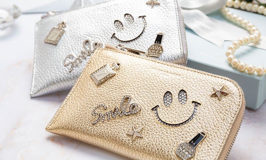 イタリアンレザーに、煌めくトッピングパーツをデザインした『ルクーチェ』シリーズ。サロンドアルファードを代表する人気シリーズはお財布をはじめバッグや小物など展開。