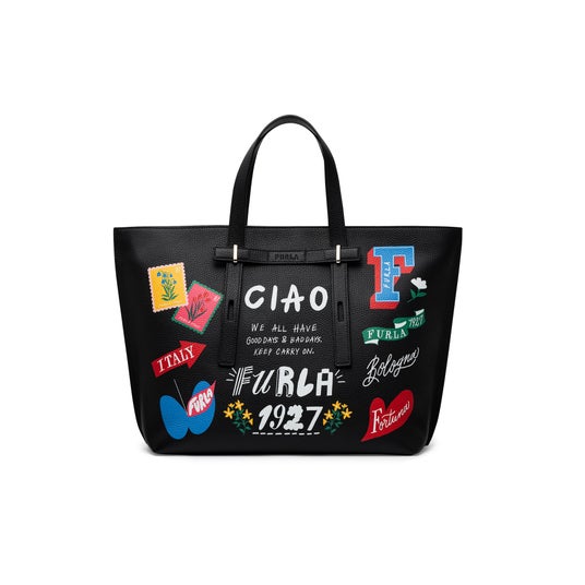 ぞれデザインしました。」と語り、L TOTEには、フルラの頭文字の”F”、創業年の”1927”、創業都市名の”Bologna”、幸運を意味するイタリア語の”Fortuna”、自立する可憐な“野花”のイラスト等が、切手やワッペンのデザインへと昇華されています。