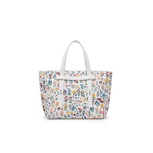 フルな印象を放ちます。M TOTEは、白いボディをキャンバスに見立て、力強く野に咲く花々を総柄で表現したカラフルで愛らしいバッグです。また、別売りのハンドルには、アーティスト自身が手描きで起こした“YOU’LL NEVER KNOW IF YOU DON’T TRY. (試してみなければわからない)”というポジ