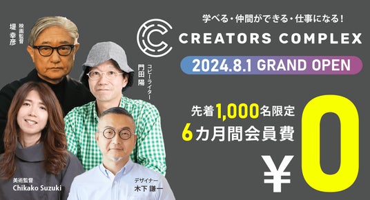 なおサービス開始を記念して、スタンダード会員と同じコンテンツを無料で体験いただけるキャンペーンを行っています。8月末までのライトコースお申込みの会員先着1,000名限定で6カ月間会員無料で全コンテンツが閲覧できます。詳細は https://creators-complex.com にてご確認いただけます。