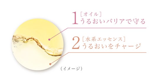 うるおいバリアで守るオイルと、うるおいをチャージする水系エッセンスの2層式。乾燥によりゆらぎがちな肌をふんわり、やさしく包み込みます。2層式の剤を振って混ぜる回数によってふんわり感が変化し、自分好みの感触でお手入れが楽しめます。