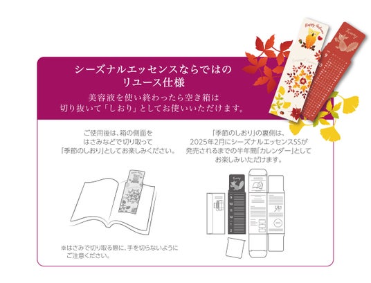 美容液使用後はしおり&カレンダーとしてリユースも。